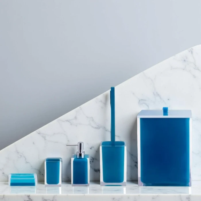 סט SQUARE בצבע כחול פטרול הכולל פח 5 ליטרים, מברשת, דיספנסר, כוס וסבוניה