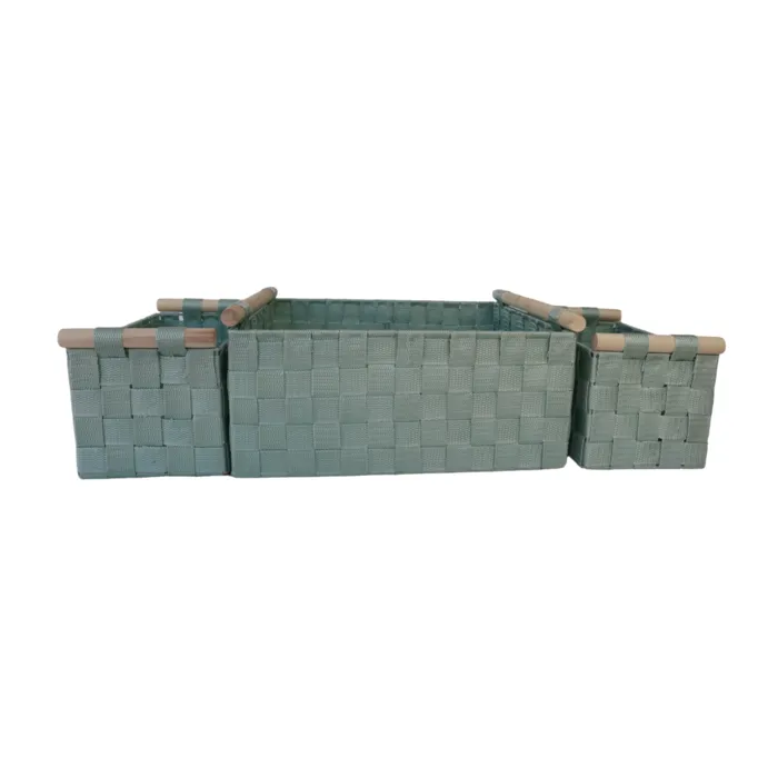 סט 3 סלסלות בד ראטן מלבניות ירוק
